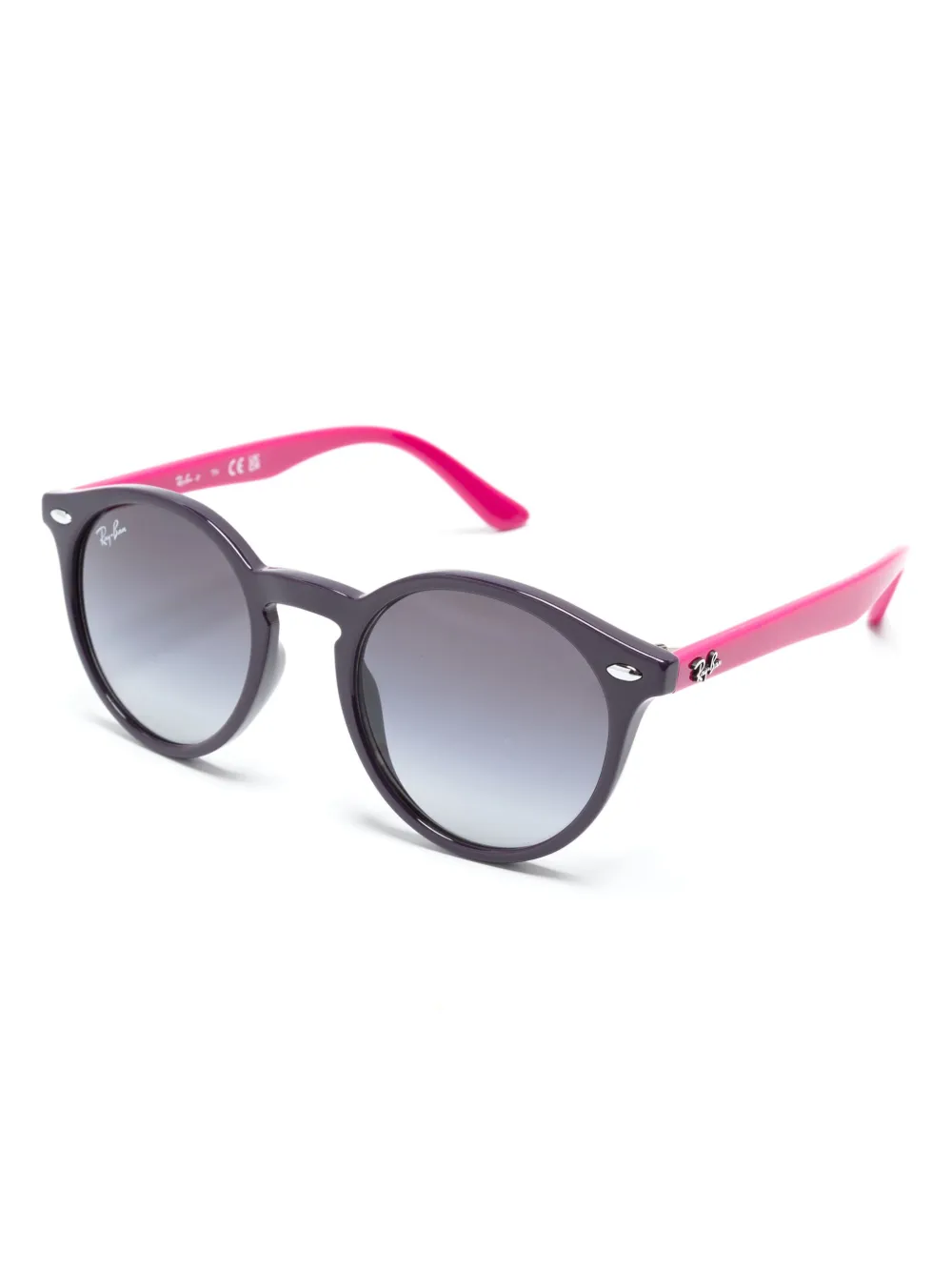 paars/kauwgomroze acetaat rond montuur glazen met kleurverloop glazen met UV-bescherming logo bedrukt pootje geschulpte pootjes gebogen uiteinde Deze bril wordt verkocht met een beschermhoes.