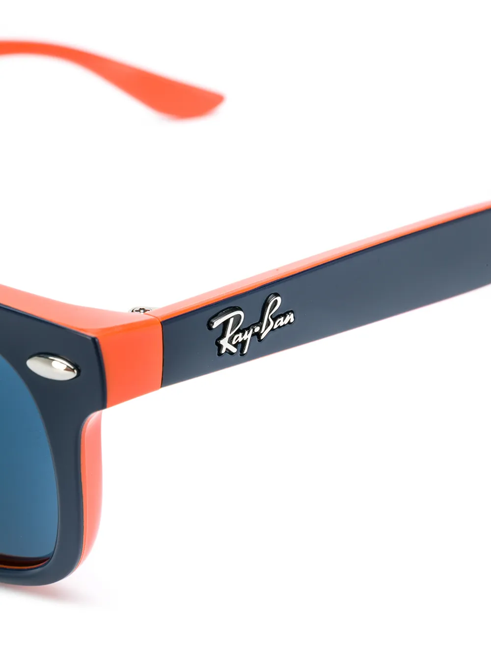 Blauw, helderrood, vierkant montuur, blauwe glazen en gewelfde pootjes. Deze bril wordt verkocht met een beschermhoes..