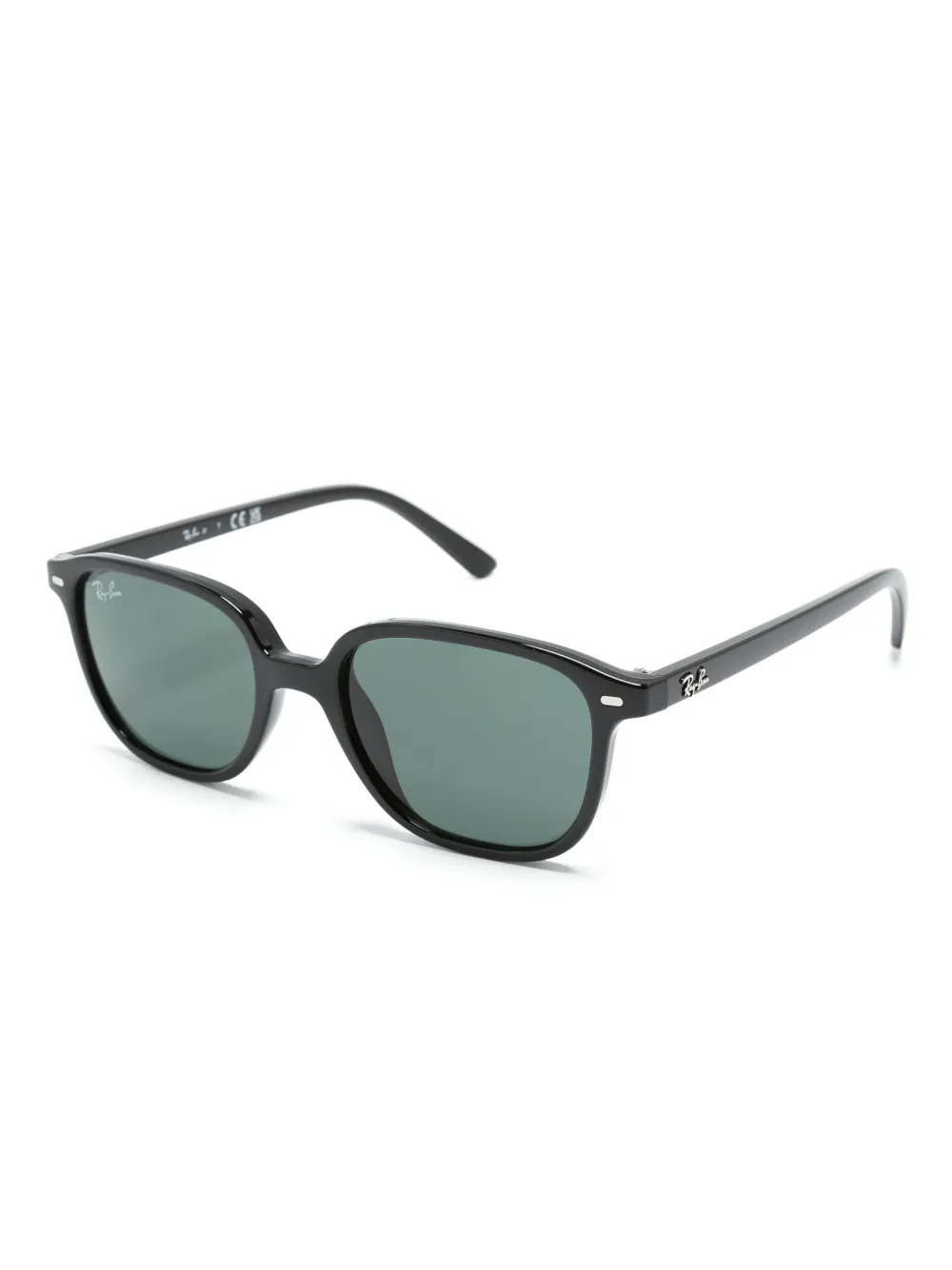 zwart acetaat vierkant montuur grijze glazen logo bedrukt pootje rechte poten met gebogen uiteinden Deze bril wordt verkocht met een beschermhoes.