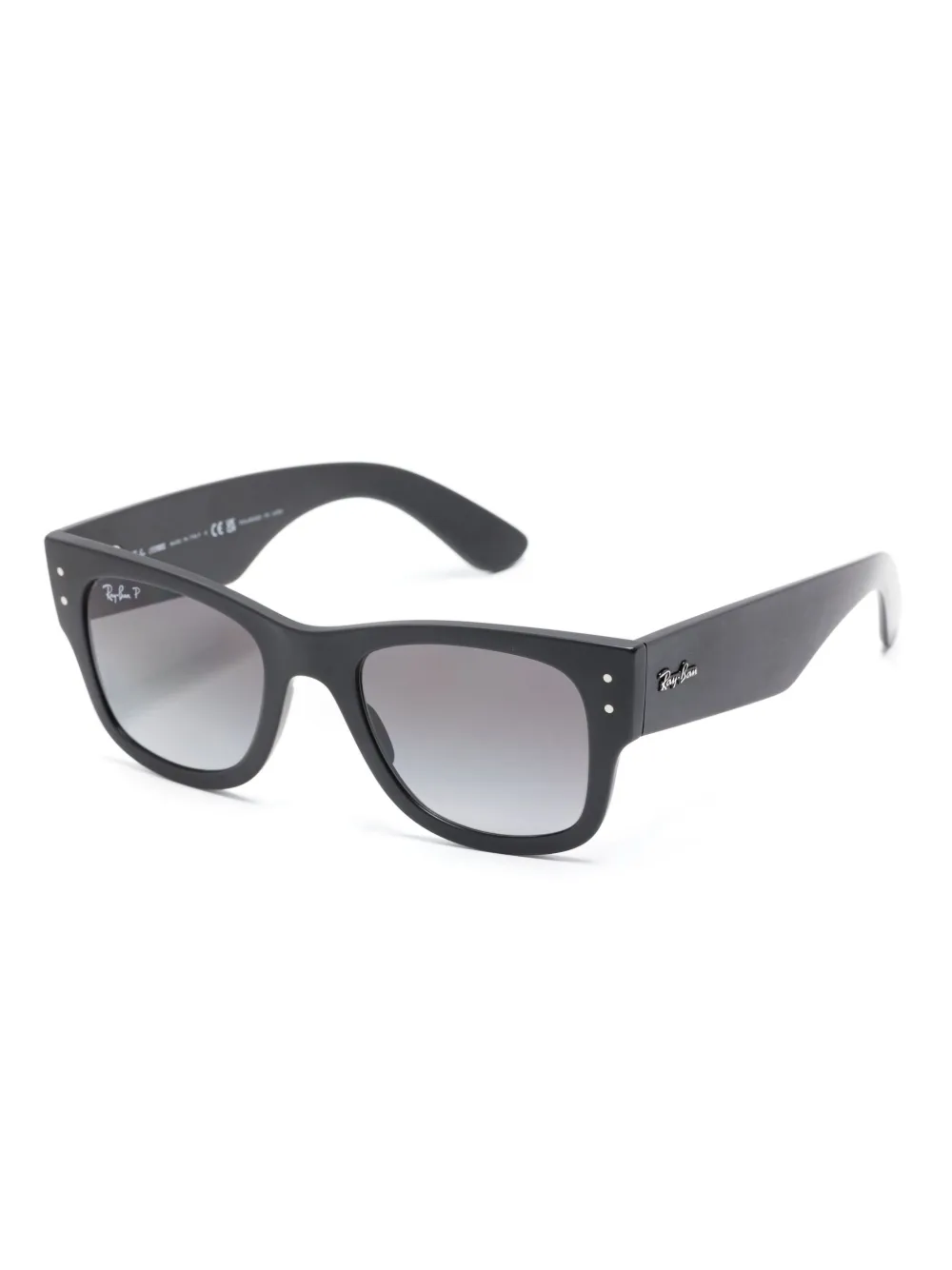 zwart acetaat matte afwerking pootjes met gegraveerd logo lens sticker vierkant montuur glazen met kleurverloop glazen met UV-bescherming gewelfde pootjes gebogen uiteinden Deze bril wordt verkocht met een beschermhoes.