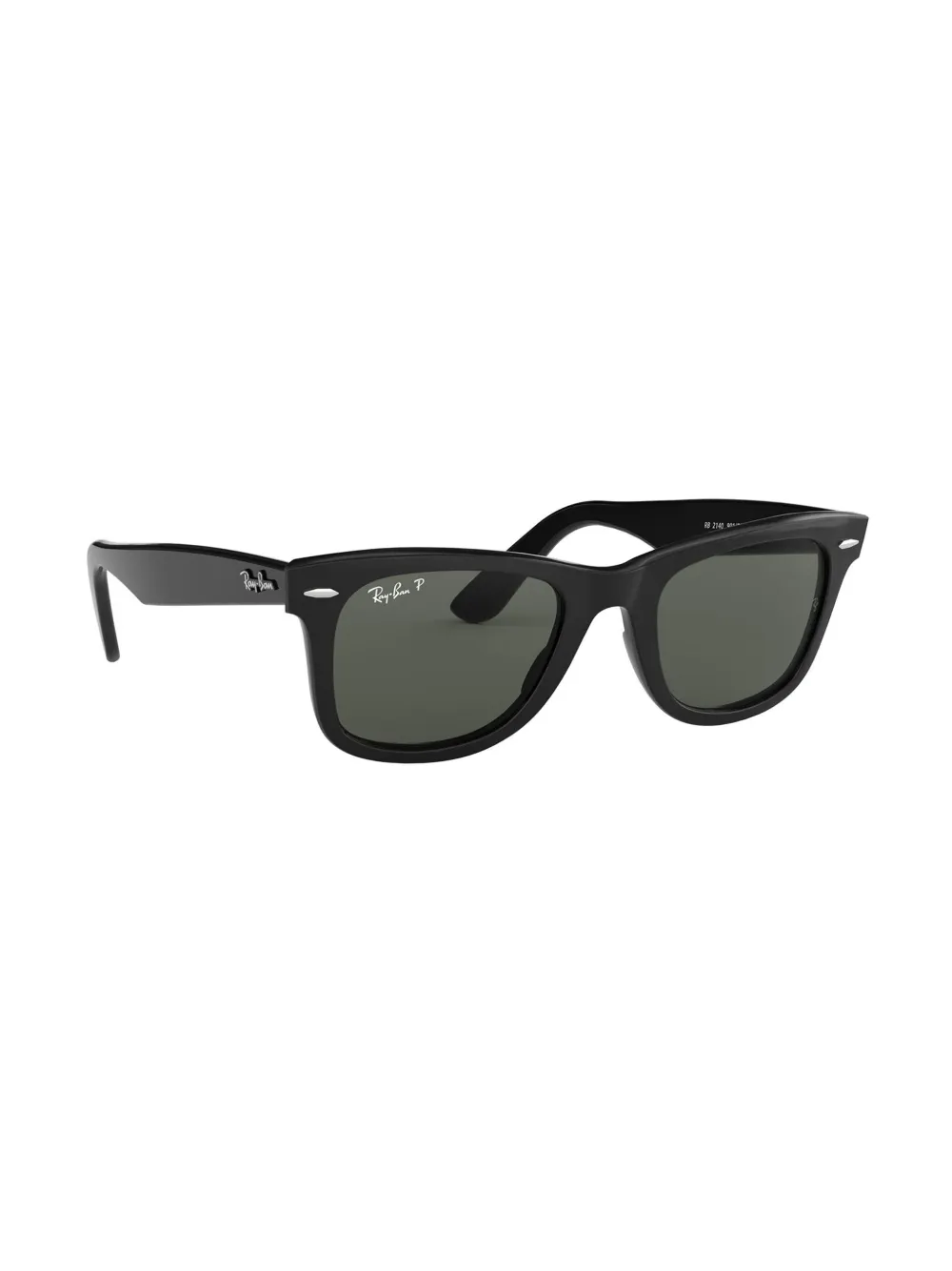 Zwart, acetaat, vierkant montuur, gekleurde glazen, polariserende glazen, gepolijste afwerking, logoplakkaat op het pootje en gebogen uiteinde. Deze bril wordt verkocht met een beschermhoes..