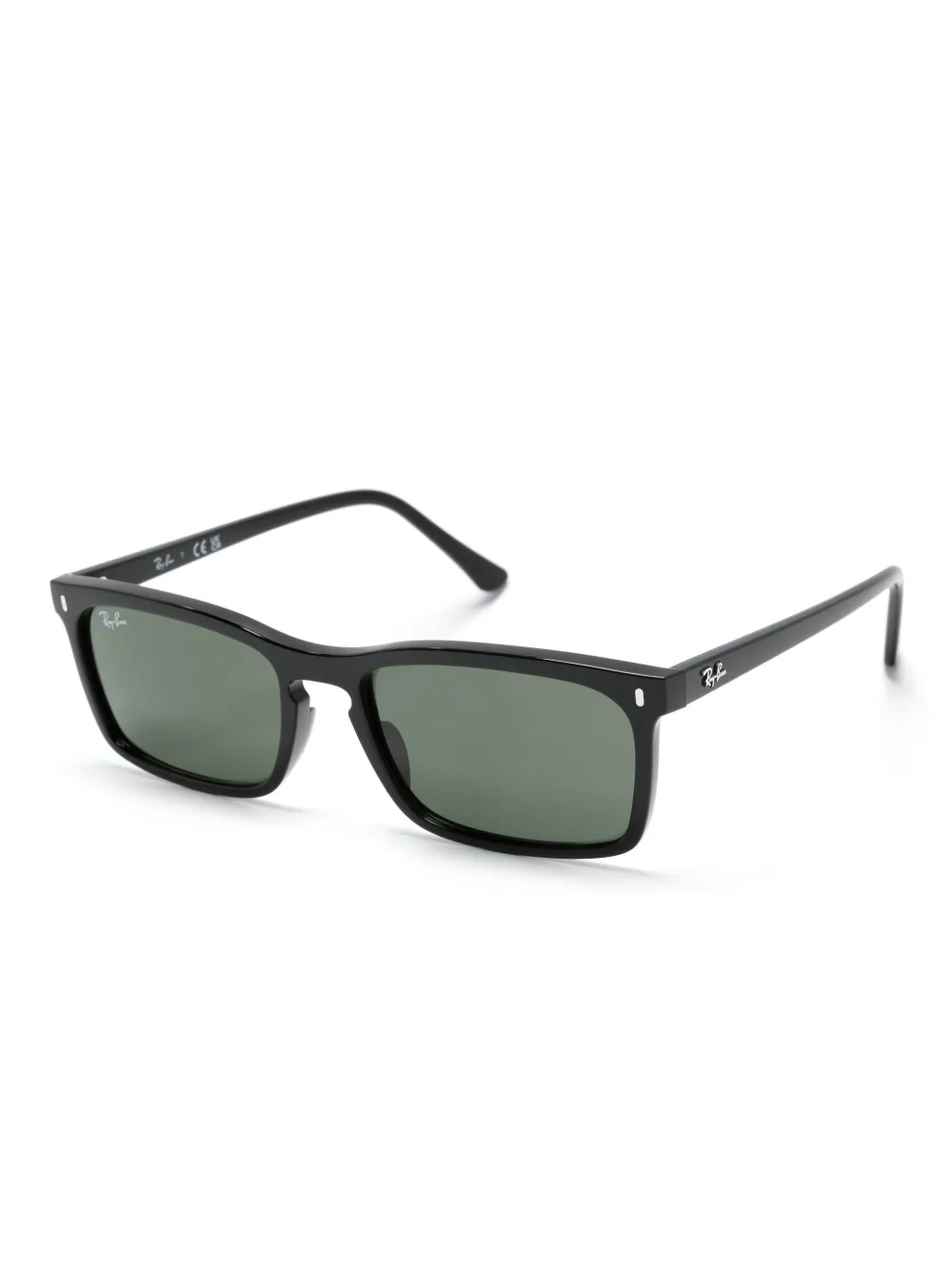 zwart acetaat rechthoekig montuur groengetinte glazen polariserende glazen logo lens sticker logo bedrukt pootje rechte poten met gebogen uiteinden Deze bril wordt verkocht met een beschermhoes.