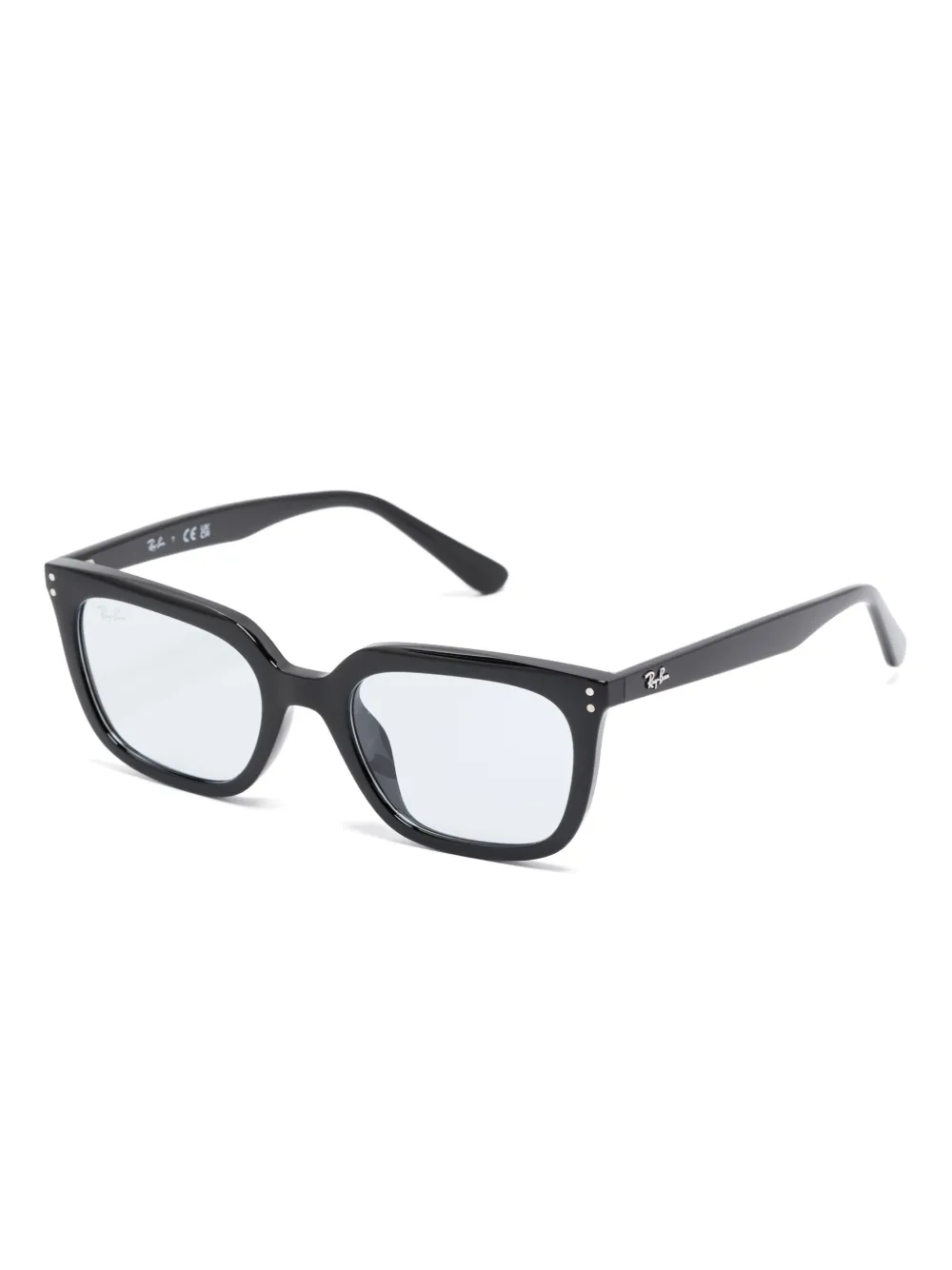 zwart acetaat vierkant montuur blauwe glazen logoplakkaat op het pootje rechte pootjes gebogen uiteinden Deze bril wordt verkocht met een beschermhoes.
