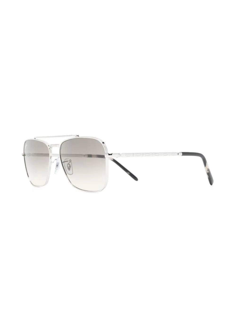 Aviator montuur, grijze glazen, gewelfde pootjes en dubbele neusbrug. Deze bril wordt verkocht met een beschermhoes..