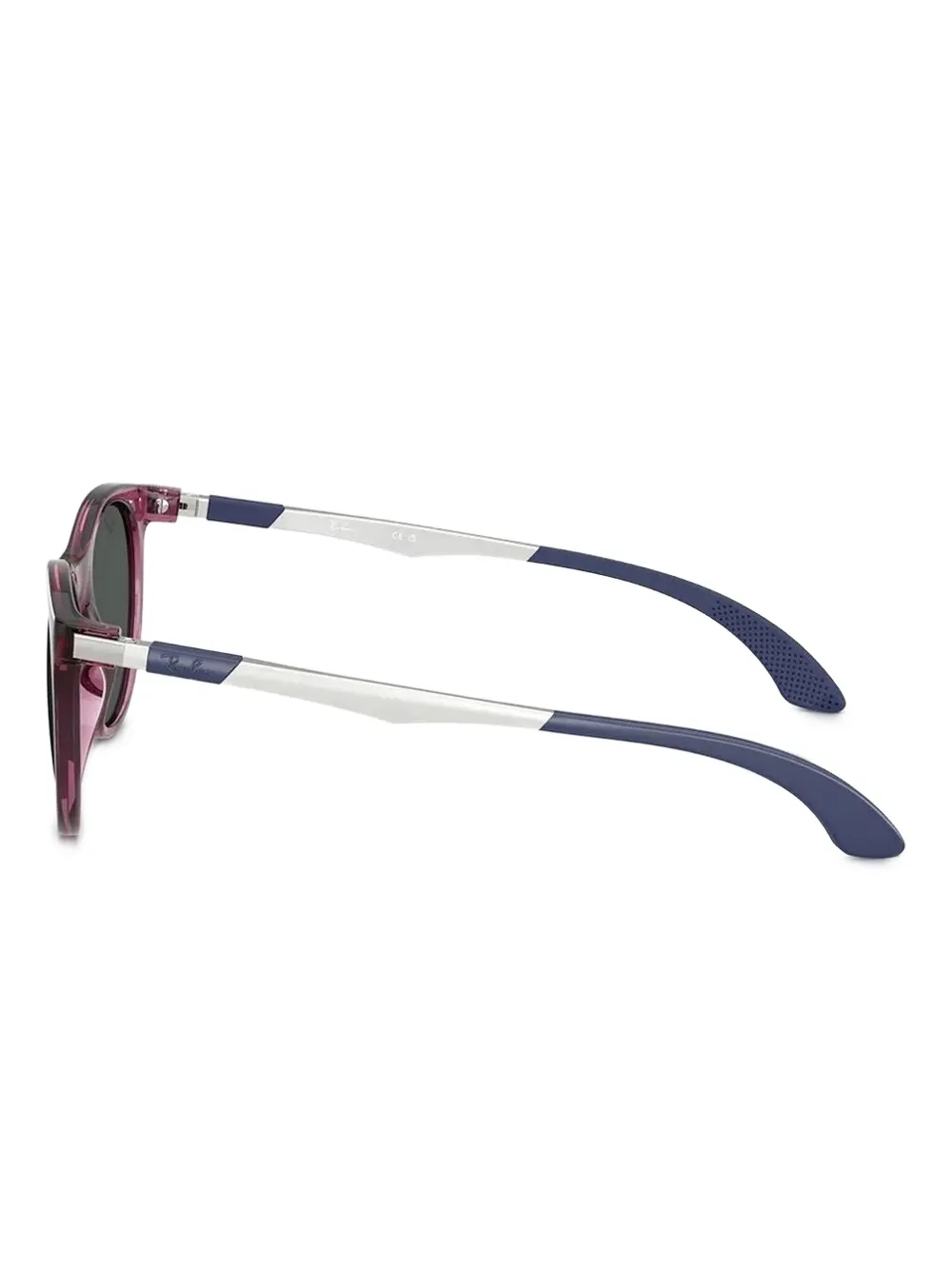 donkerroze grijze glazen zilverkleurige pootjes marineblauwe uiteinden van de pootjes logodetail Deze bril wordt verkocht met een beschermhoes.