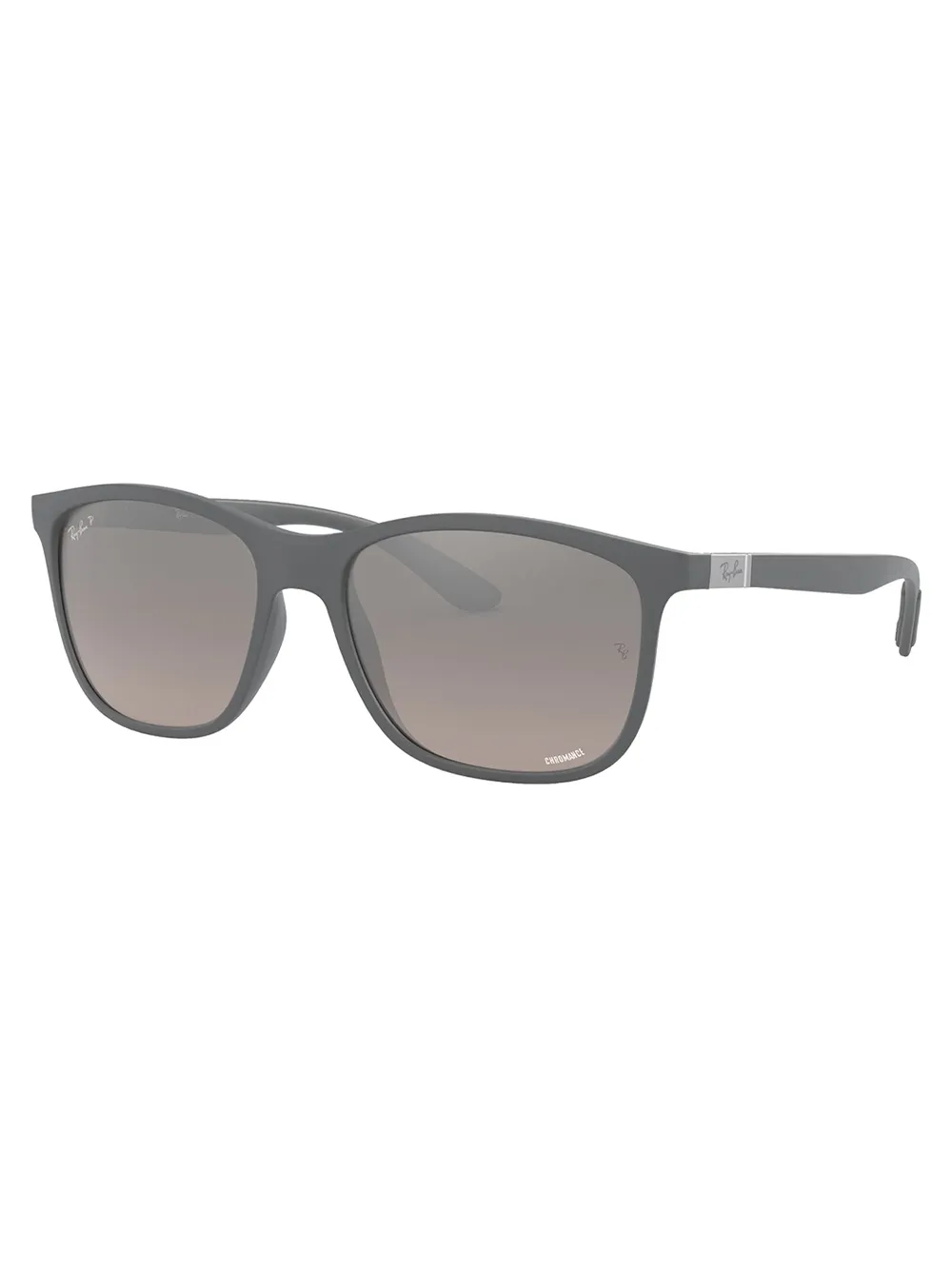 Grijs, vierkant montuur, pootje met gegraveerd logo, grijze glazen, polariserende glazen, rechte pootjes en gebogen uiteinde. Deze bril wordt verkocht met een beschermhoes..