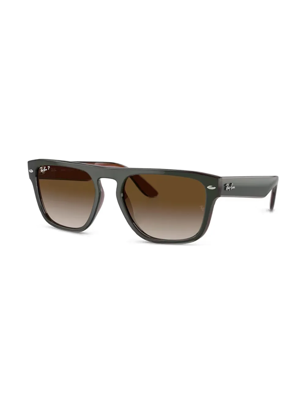 olijfgroen glanzende afwerking vierkant montuur glazen met kleurverloop gewelfde pootjes zilverkleurig logo gebogen uiteinden Deze bril wordt verkocht met een beschermhoes.