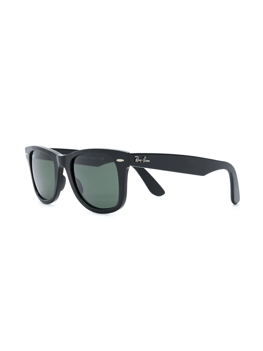 Zonnebril met vierkant montuur van Ray Ban uitgevoerd in acetaat voorzien van donker getinte glazen, logo aan de buitenkant van de armen en gestrekte armen met hoekig uiteinde. Het artikel is inclusief beschermende hoes.