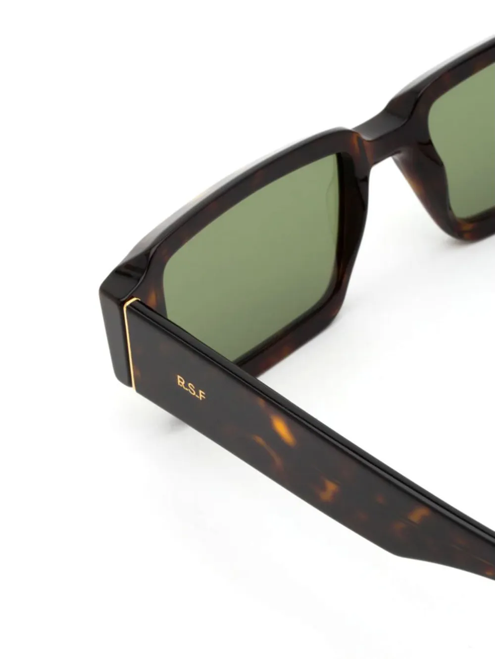 bruin vierkant montuur groen getinte glazen logoprint op het pootje Deze bril wordt verkocht met een beschermhoes.