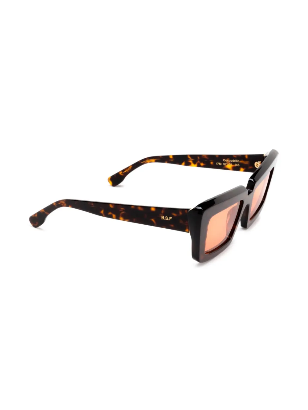 bruin schildpad montuur cat-eye montuur oranje getinte glazen met UV-bescherming logoprint op het pootje rechte poten met gebogen uiteinden Deze bril wordt verkocht met een beschermhoes.