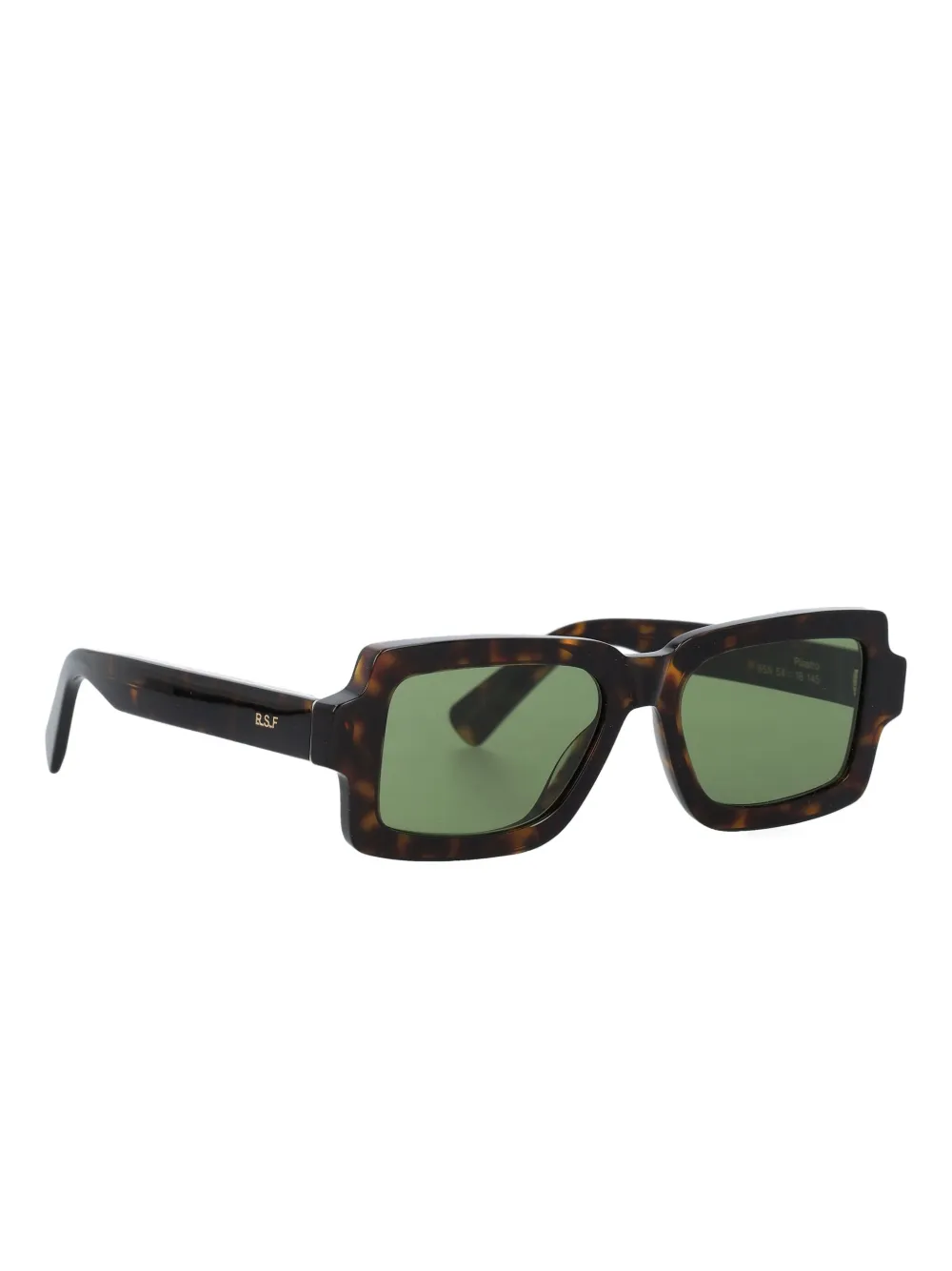 bruin rechthoekig montuur groene glazen Deze bril wordt verkocht met een beschermhoes.