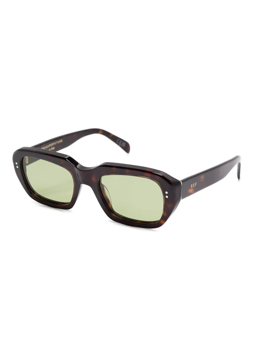 bruin schildpadschild-effect groene glazen rechthoekig montuur goudkleurig logo Deze bril wordt verkocht met een beschermhoes.