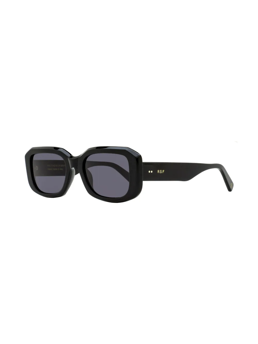 zwart grijze glazen UV-bescherming rechthoekig montuur logoprint op het pootje gewelfde pootjes rechte afwerking Deze bril wordt verkocht met een beschermhoes.