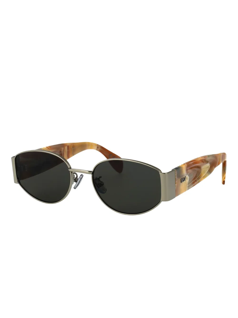 bruin ovaal montuur gekleurde glazen tempels met marmer-effect neuskussentjes Deze bril wordt verkocht met een beschermhoes.