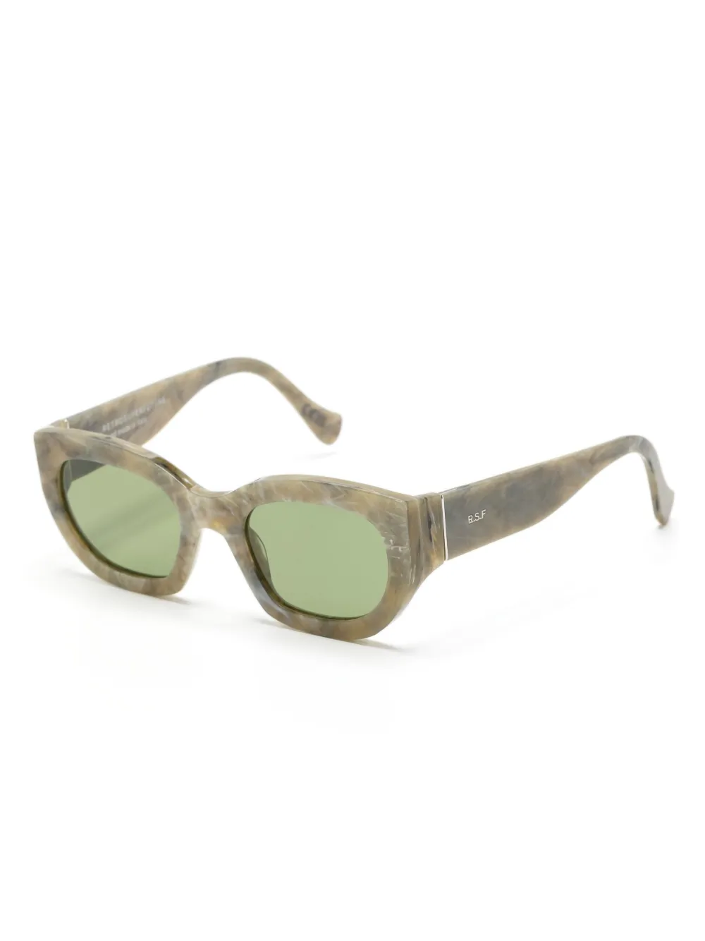 saliegroen acetaat rechthoekige vorm groengetinte glazen glazen met UV-bescherming marmeren effect logo bedrukt pootje oversized pootjes gebogen uiteinden Deze bril wordt verkocht met een beschermhoes.