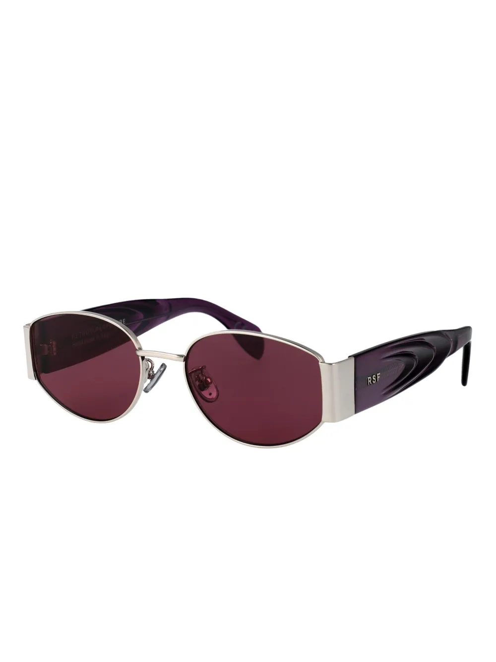 paars ovaal montuur gekleurde glazen acetaat tempels zilverkleurig materiaal Deze bril wordt verkocht met een beschermhoes.