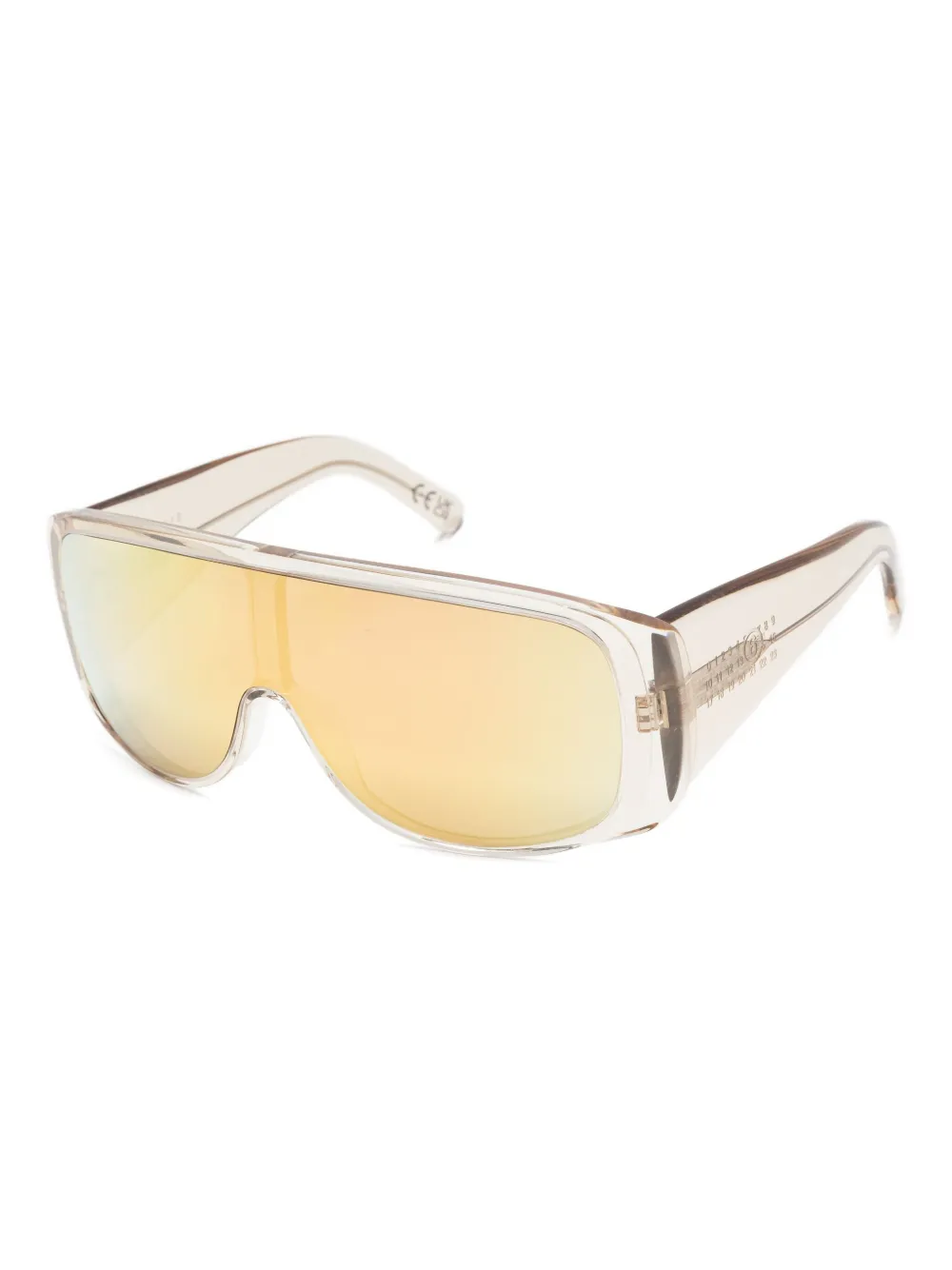 beige gespiegelde glazen acetaat dik montuur rechte pootjes gebogen uiteinden Deze bril wordt verkocht met een beschermhoes.