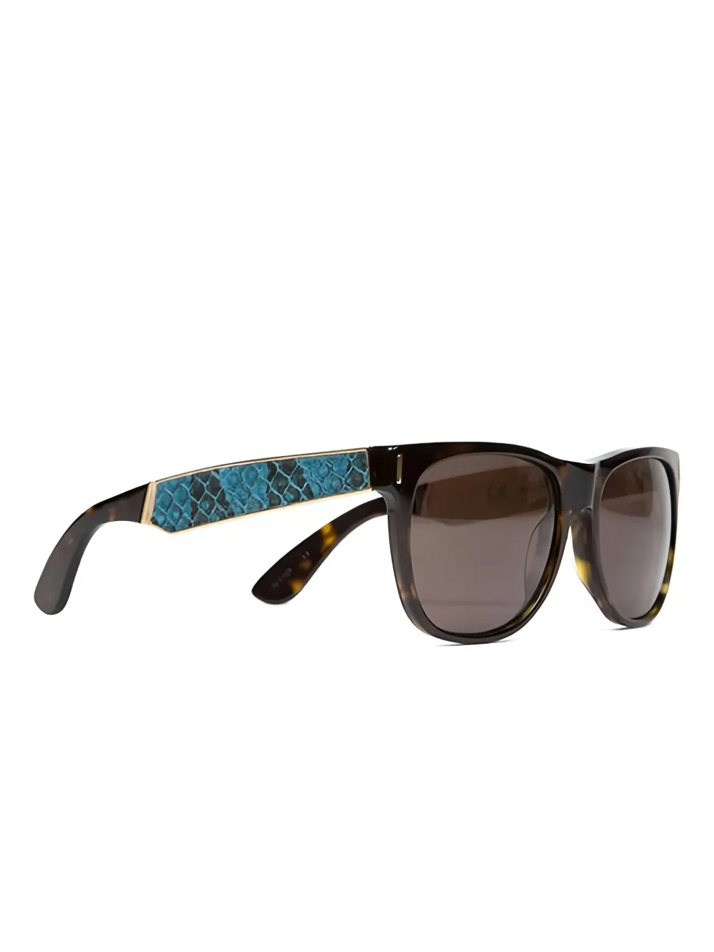 bruin vierkant montuur slangendetail goudkleurige details op de pootjes donkere glazen acetaat montuur Deze bril wordt verkocht met een beschermhoes.