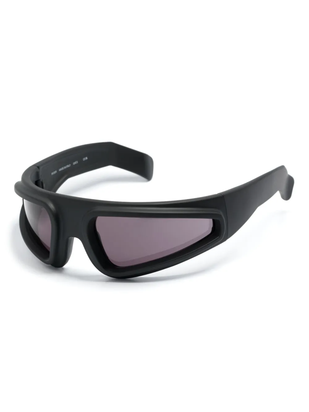 zwart matte-effect acetaat biker montuur glazen met UV-bescherming rechte poten met gebogen uiteinden Deze bril wordt verkocht met een beschermhoes.