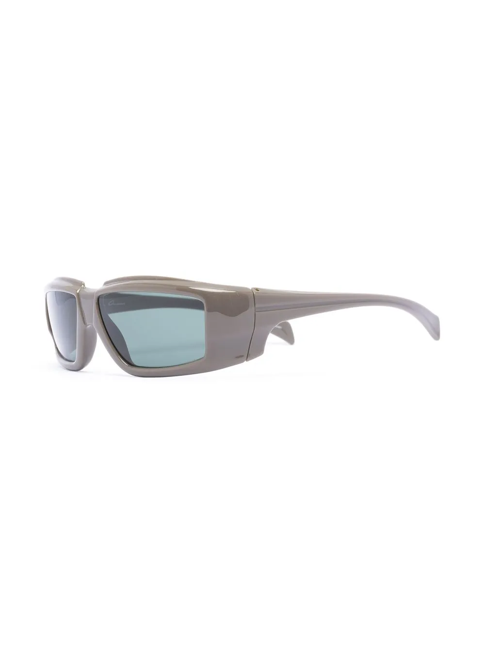 Taupe grijs, acetaat, rechthoekig montuur, gekleurde glazen, zilverkleurig logo, logoplakkaat op het pootje en rechte pootjes. Deze bril wordt verkocht met een beschermhoes..