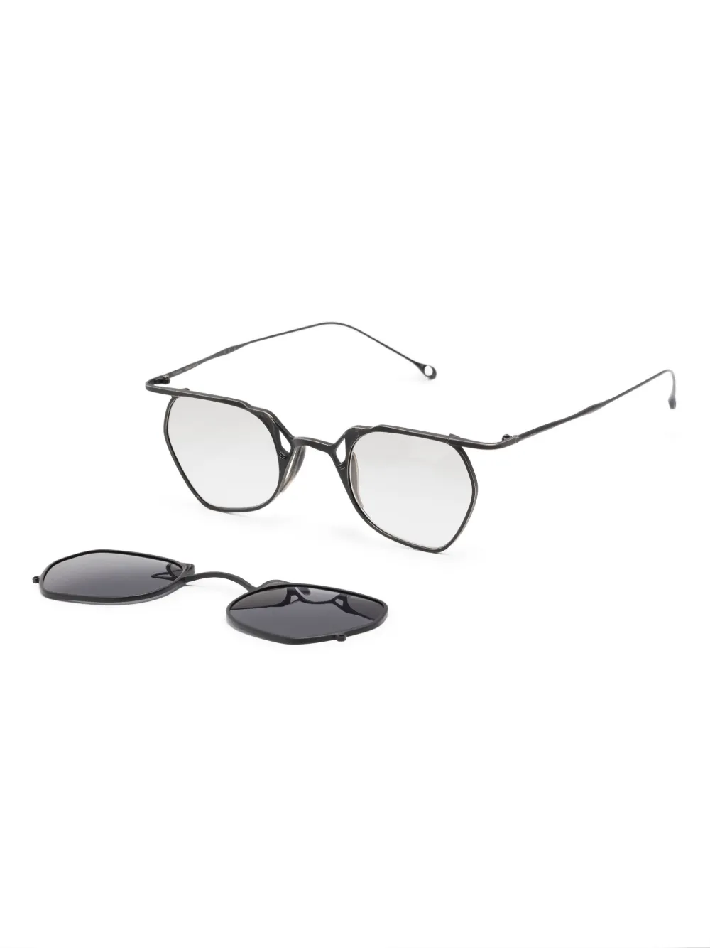 zwart clip-on glazen rechte pootjes gebogen uiteinden Deze bril wordt verkocht met een beschermhoes.