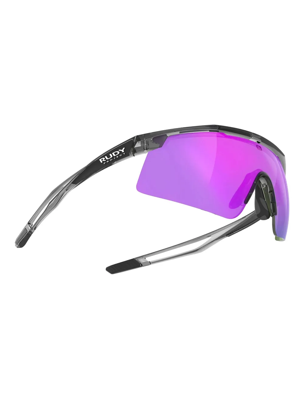 zwart paarse spiegelende glazen shield montuur Deze bril wordt verkocht met een beschermhoes.