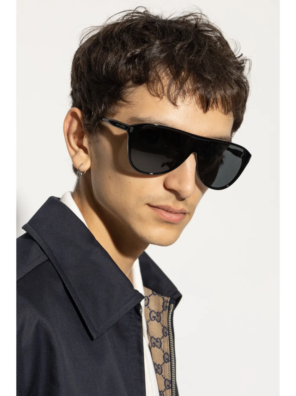 zwart gerecycled acetaat shield montuur grijze glazen glazen met UV-bescherming pootje met logo-reliëf geschulpte pootjes gebogen uiteinden Deze bril wordt verkocht met een beschermhoes.