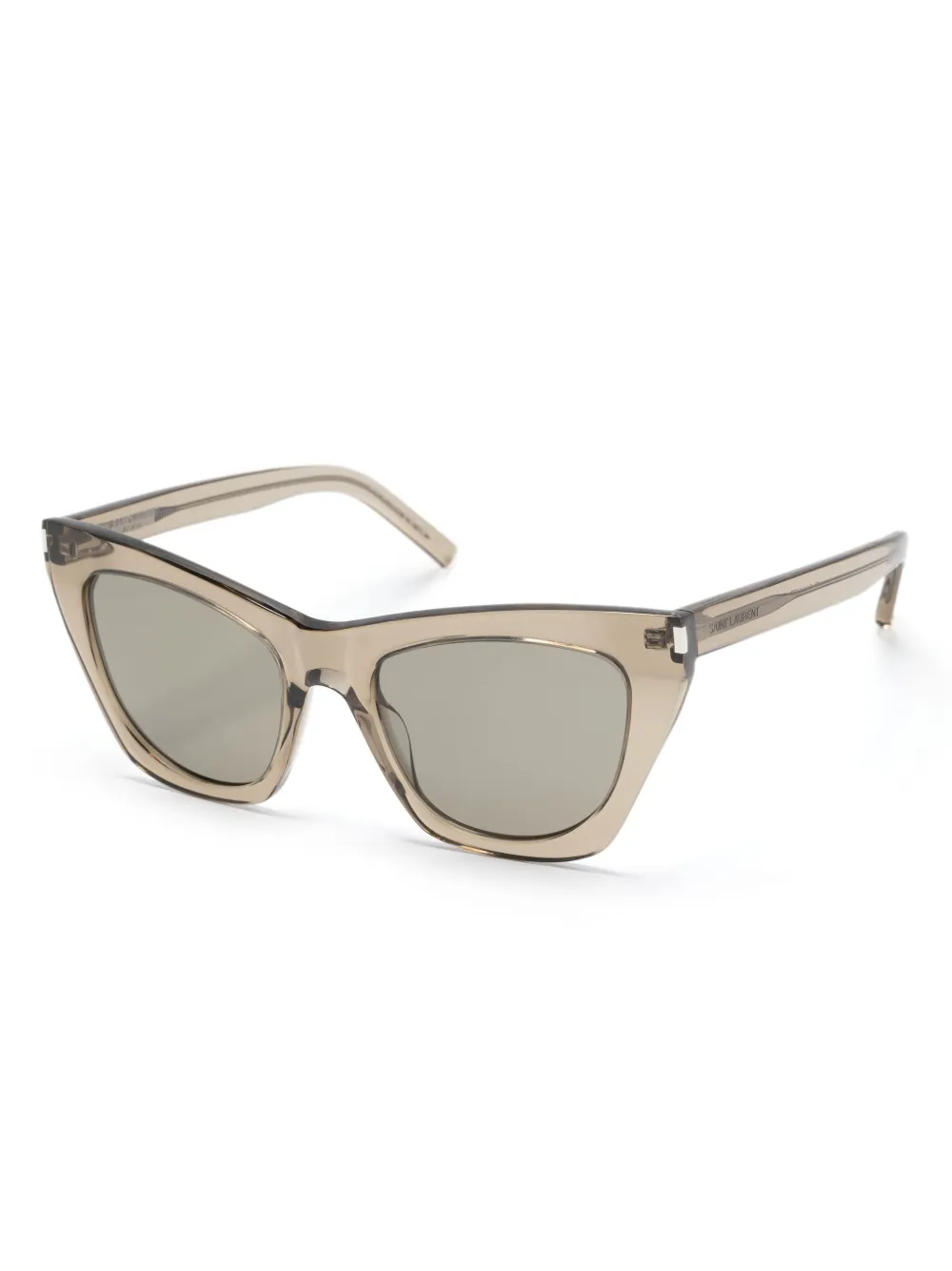 bruin acetaat doorzichtig montuur cat-eye montuur gekleurde glazen glazen met UV-bescherming rechte pootjes gebogen uiteinden gegraveerd logo Deze bril wordt verkocht met een beschermhoes.