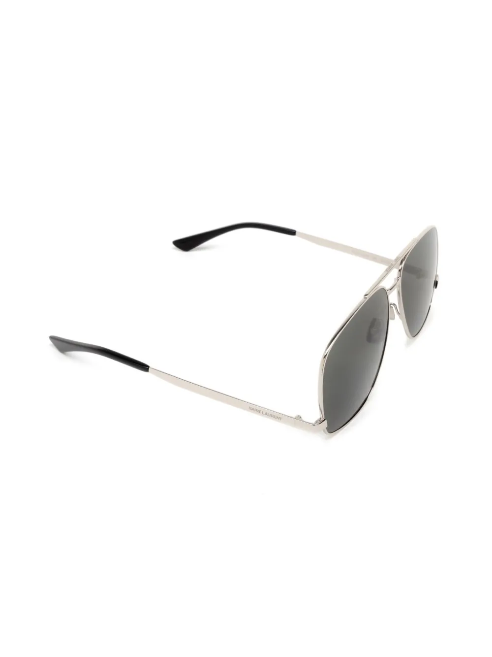 Zilverkleurig, metaal, oversized montuur, gekleurde glazen, neuskussentjes, rechte pootjes en gebogen uiteinde. Deze bril wordt verkocht met een beschermhoes..