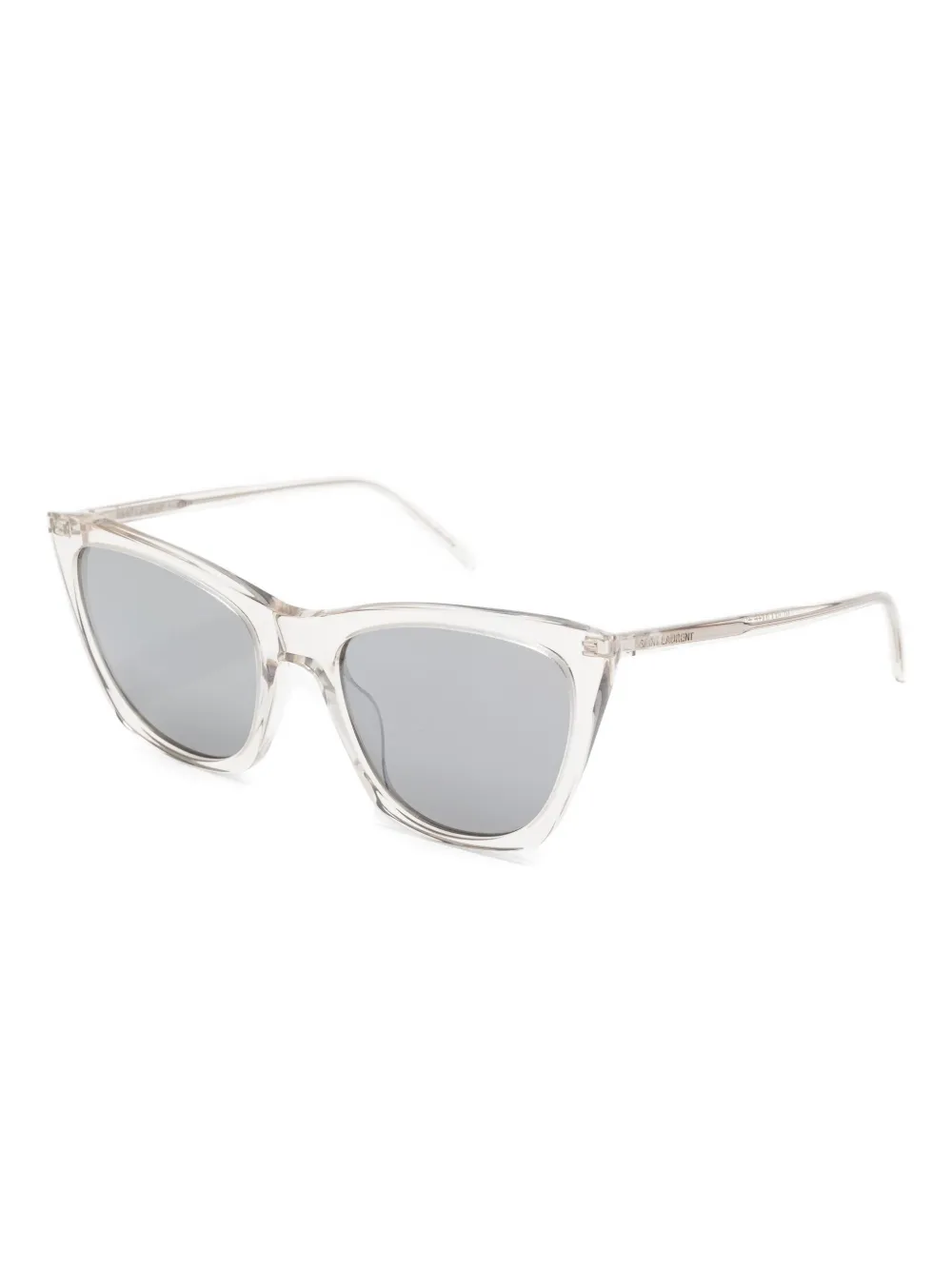 lichtbeige cat-eye grijze glazen rechte pootjes Deze bril wordt verkocht met een beschermhoes.