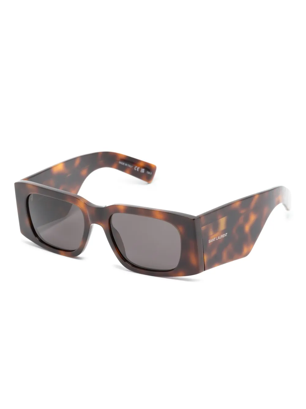 bruin acetaat schildpad montuur rechthoekig montuur grijze glazen brede poten logoprint op de brillenpoot gebogen uiteinden Deze bril wordt verkocht met een beschermhoes.