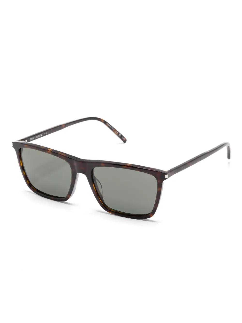 bruin acetaat schildpad montuur vierkant montuur groen getinte glazen glazen met UV-bescherming pootjes met gegraveerd logo rechte pootjes gebogen uiteinden Deze bril wordt verkocht met een beschermhoes.