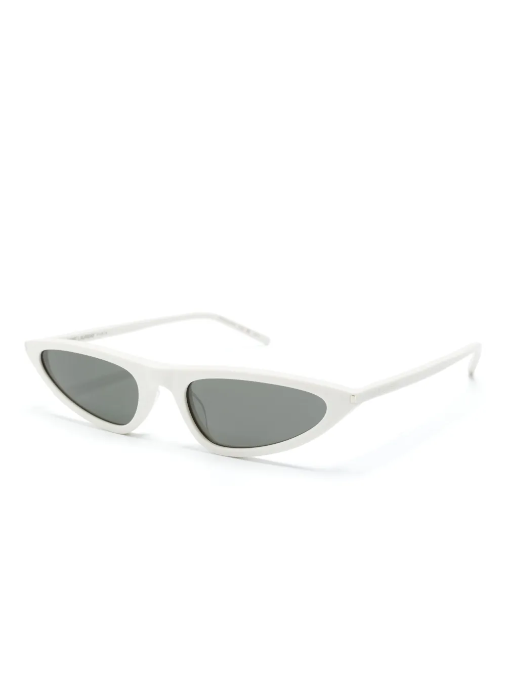 wit acetaat cat-eye montuur grijze glazen rechte pootjes pootje met gegraveerd logo gebogen uiteinden Deze bril wordt verkocht met een beschermhoes.