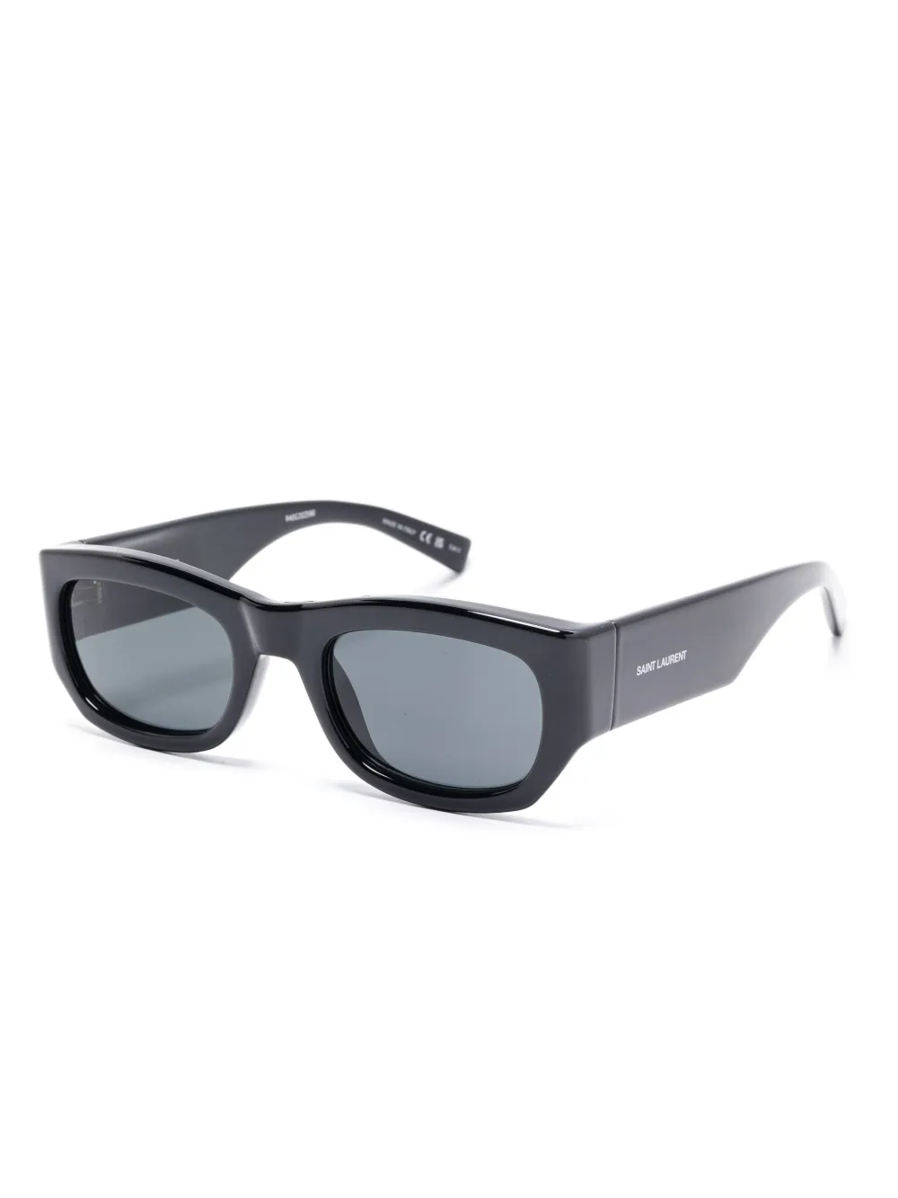 zwart acetaat rechthoekig montuur grijze glazen glazen met UV-bescherming rechte pootjes gegraveerd logo gebogen uiteinden Deze bril wordt verkocht met een beschermhoes.