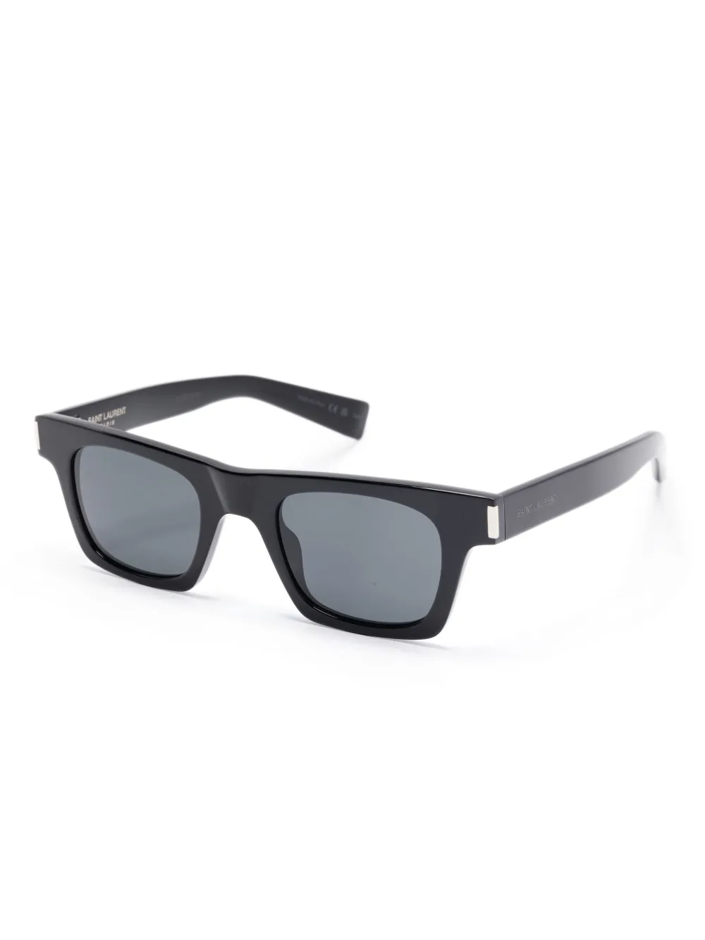 zwart acetaat rechthoekig montuur grijze glazen glazen met UV-bescherming rechte pootjes gegraveerd logo gebogen uiteinden Deze bril wordt verkocht met een beschermhoes.