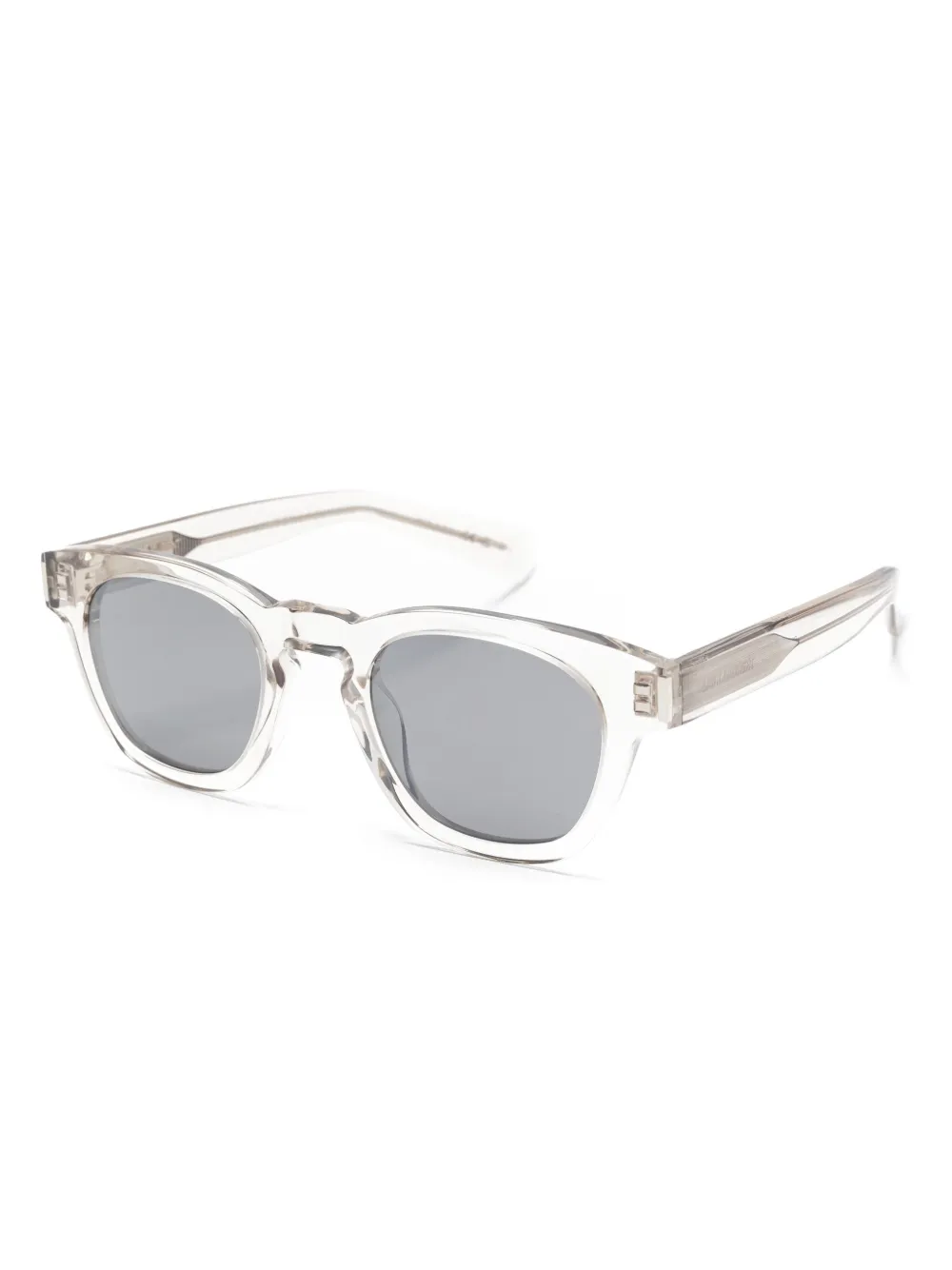 asgrijs doorzichtig design vierkant montuur grijze glazen glazen met UV-bescherming logoplakkaat op het pootje rechte pootjes gebogen uiteinden