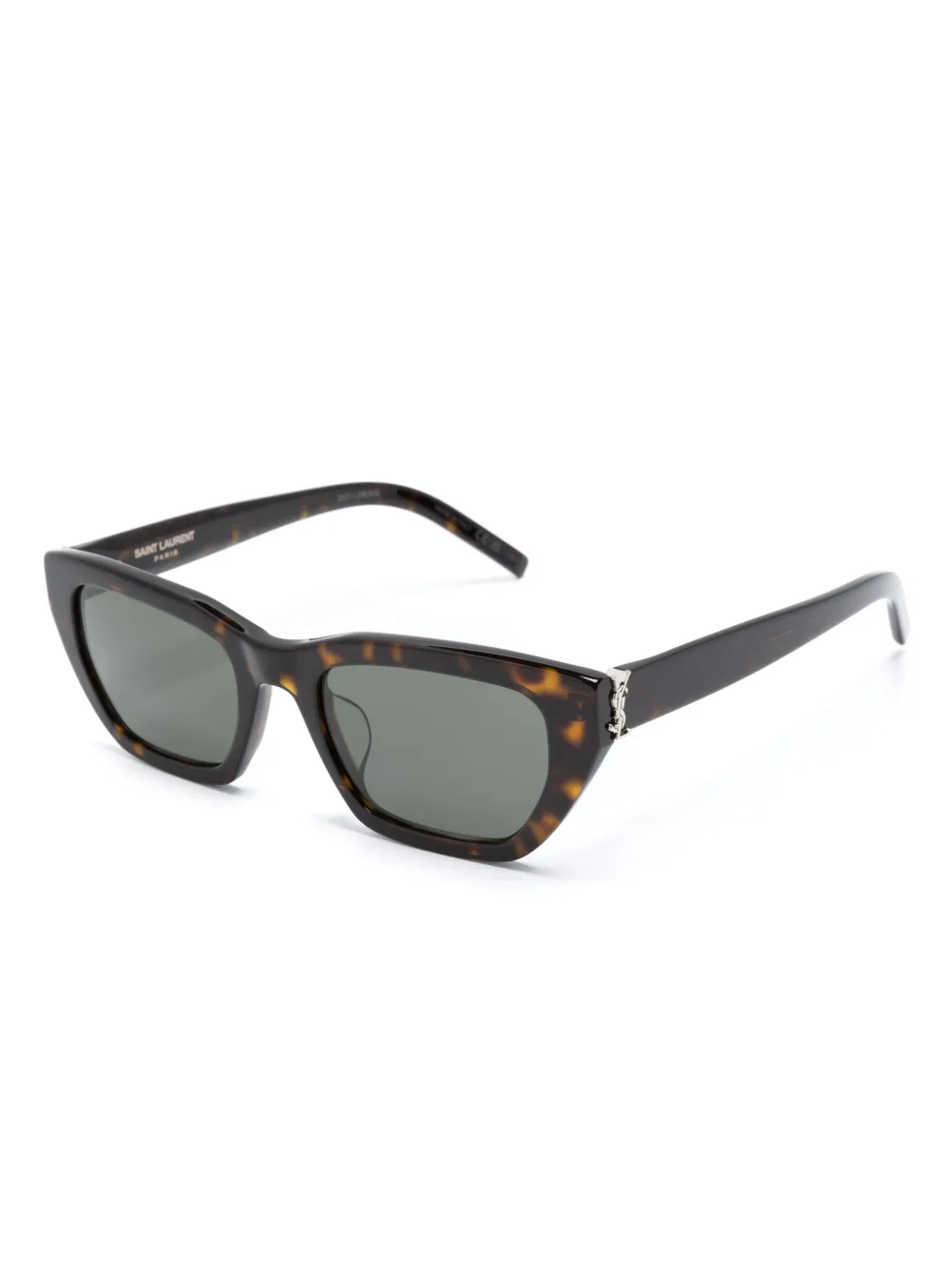 Havana bruin, acetaat, schildpad montuur, cat-eye montuur, gekleurde glazen, glazen met UV-bescherming, goudkleurige hardware, logoplakkaat op het pootje, rechte pootjes en gebogen uiteinde. Deze bril wordt verkocht met een beschermhoes..