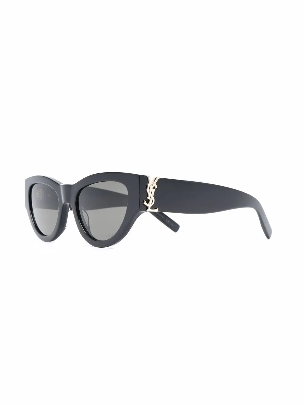 Logoplakkaat op het pootje, gekleurde glazen, kattenoog montuur en rechte afwerking. Deze bril wordt verkocht met een beschermhoes..
