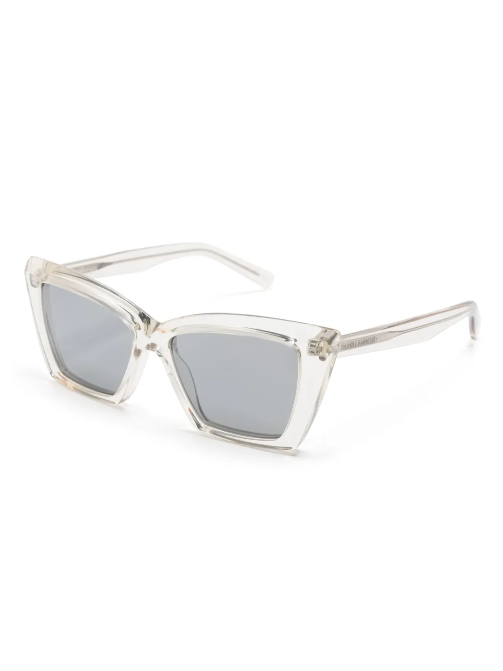 doorzichtig design acetaat doorzichtig montuur vlindermontuur grijze glazen logoprint op de brillenpoot rechte poten met gebogen uiteinden Deze bril wordt verkocht met een beschermhoes.