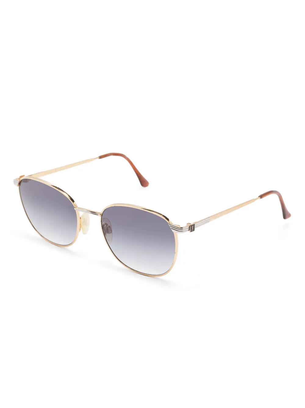 goudkleurig vierkant montuur glazen met kleurverloop rechte pootjes pootjes met gegraveerd logo gebogen uiteinden neuskussentjes Deze bril wordt verkocht met een beschermhoes.