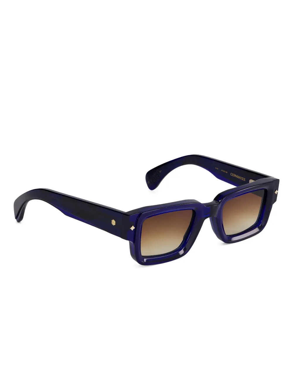 donkerblauw rechthoekig montuur glazen met kleurverloop goudkleurige details Deze bril wordt verkocht met een beschermhoes.