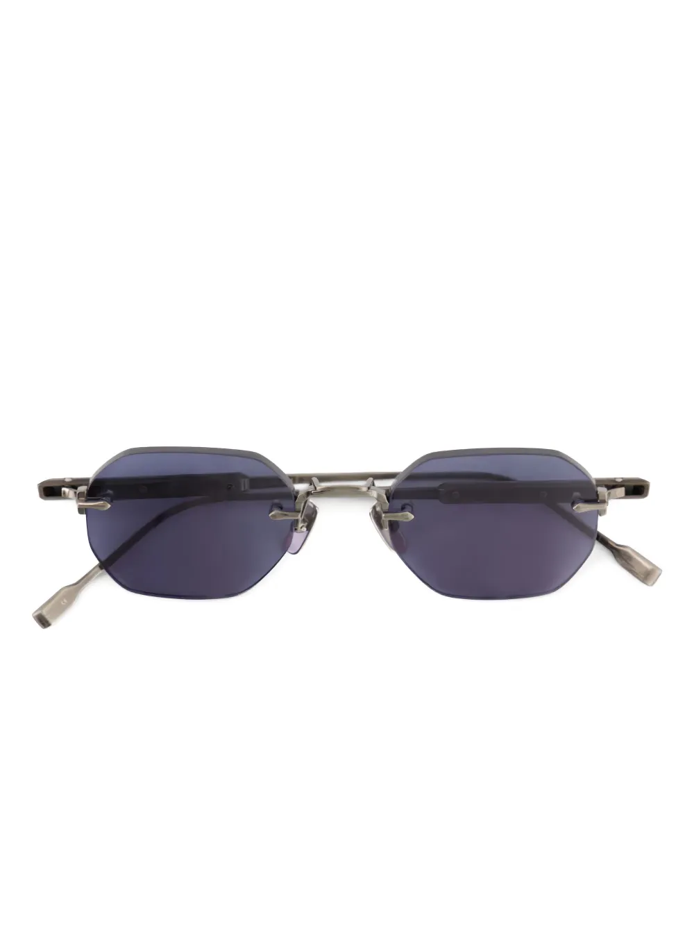zilverkleurig geometrisch titanium montuur randloos design rechte pootjes Deze bril wordt verkocht met een beschermhoes.
