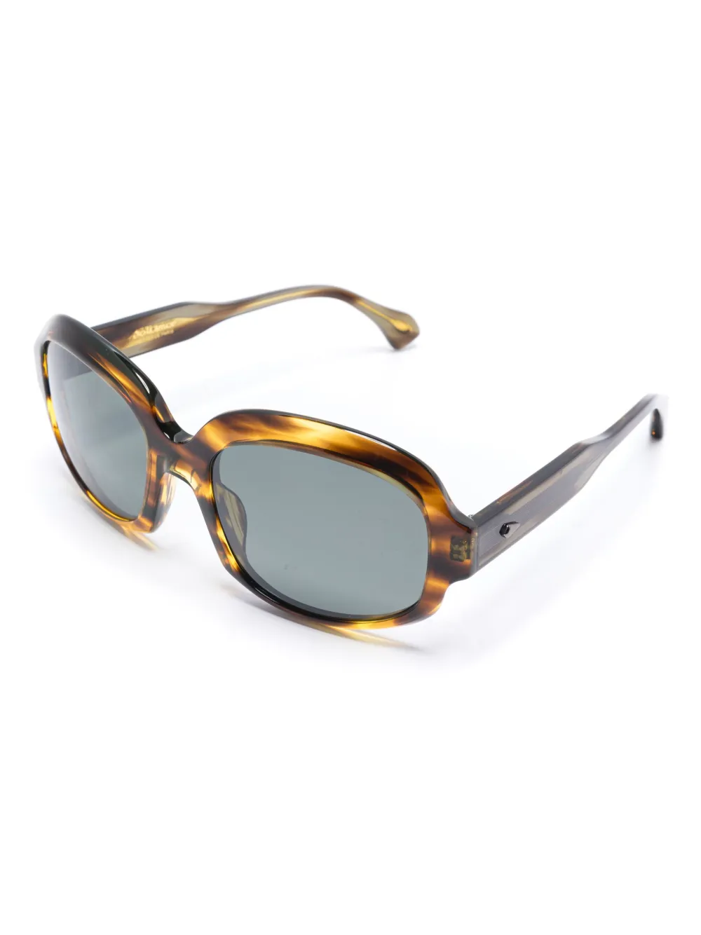 bruin vierkant montuur neuskussentjes grijze glazen gebogen uiteinden Deze bril wordt verkocht met een beschermhoes.