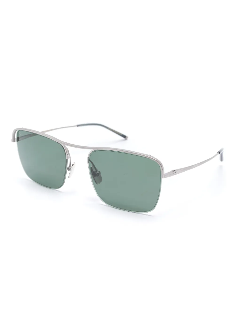 zilverkleurig neuskussentjes vierkant montuur gebogen uiteinden groen getinte glazen Deze bril wordt verkocht met een beschermhoes.
