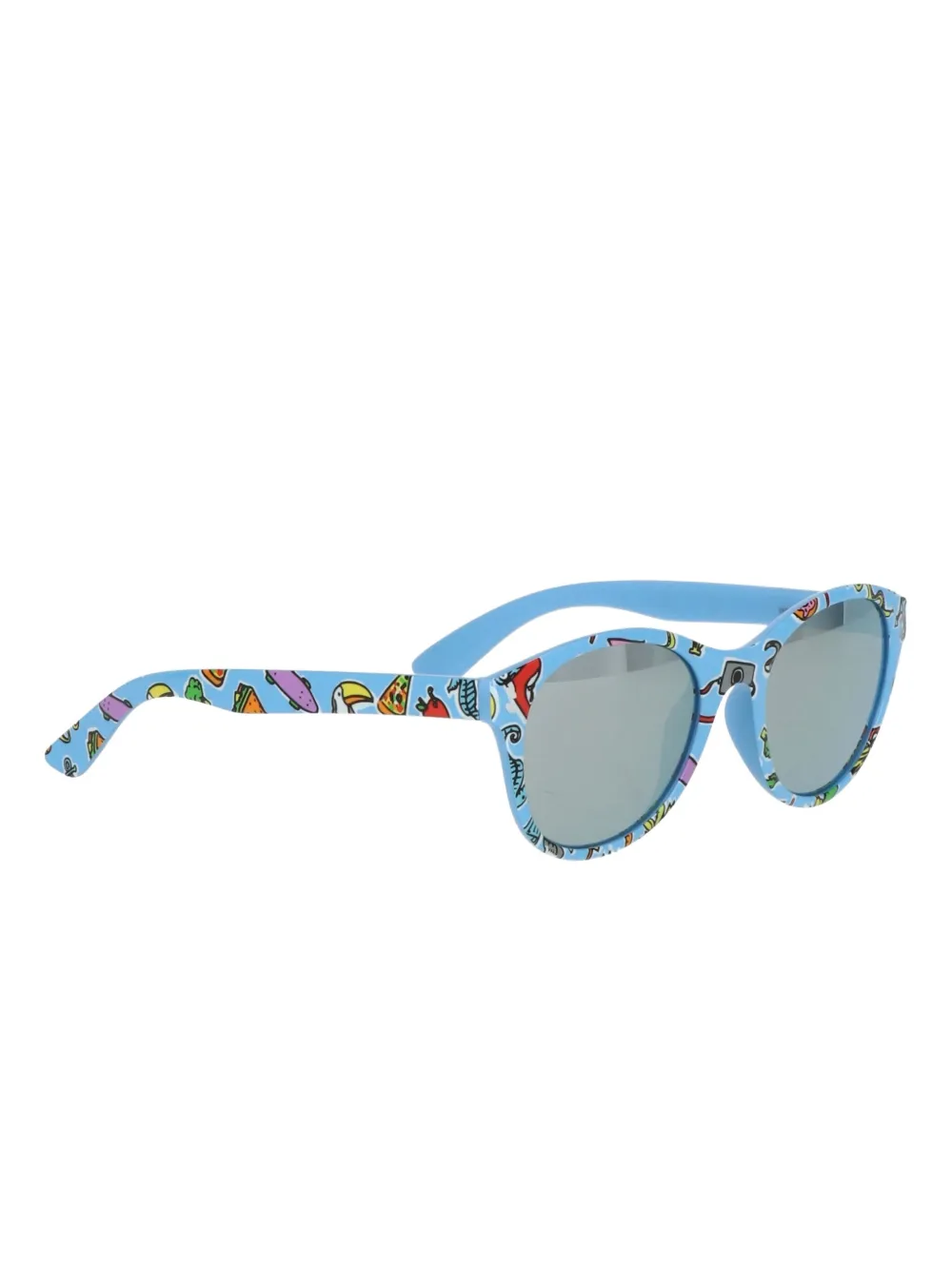 blauw rond montuur kleurrijk patroon gespiegelde glazen Deze bril wordt verkocht met een beschermhoes.