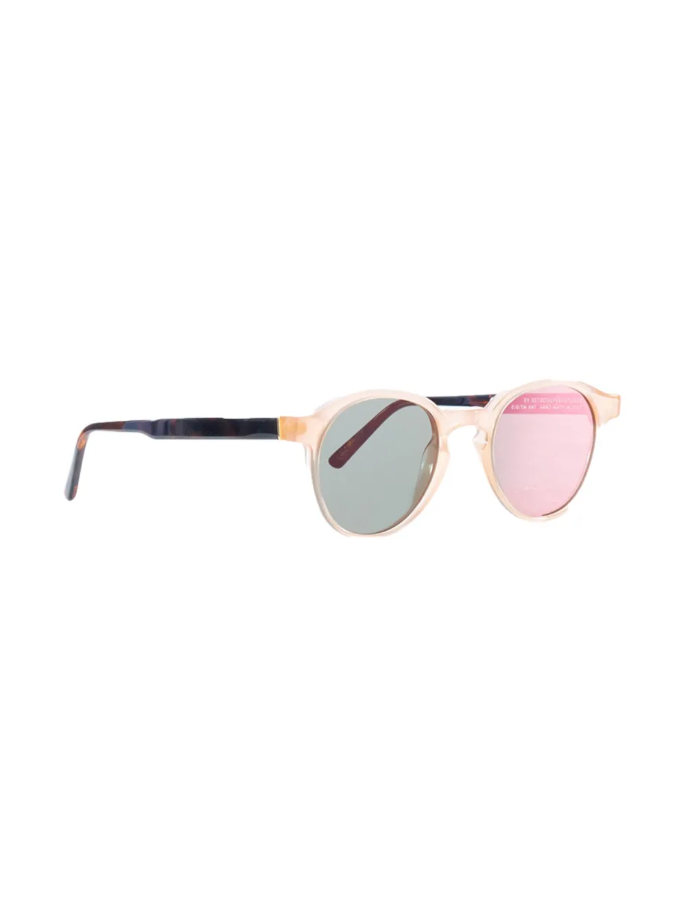 poederroze rond montuur gekleurde glazen gebogen uiteinden Deze bril wordt verkocht met een beschermhoes.