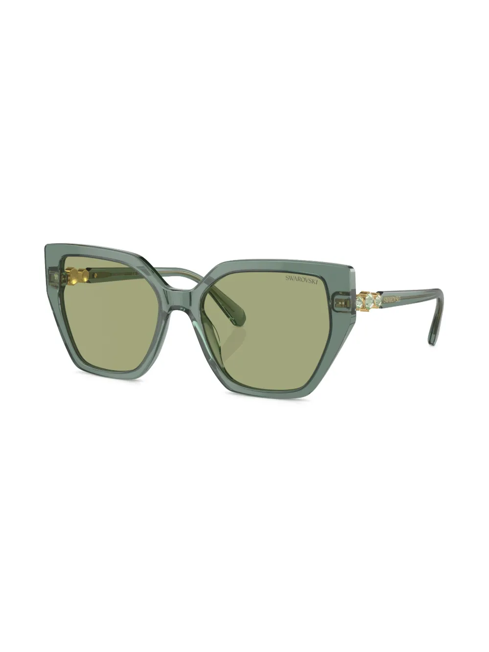 saliegroen acetaat doorzichtig design verfraaid met Swarovski-kristallen logoprint op de brillenpoot groen getinte glazen cat-eye montuur geschulpte pootjes gebogen uiteinden Deze bril wordt verkocht met een beschermhoes.