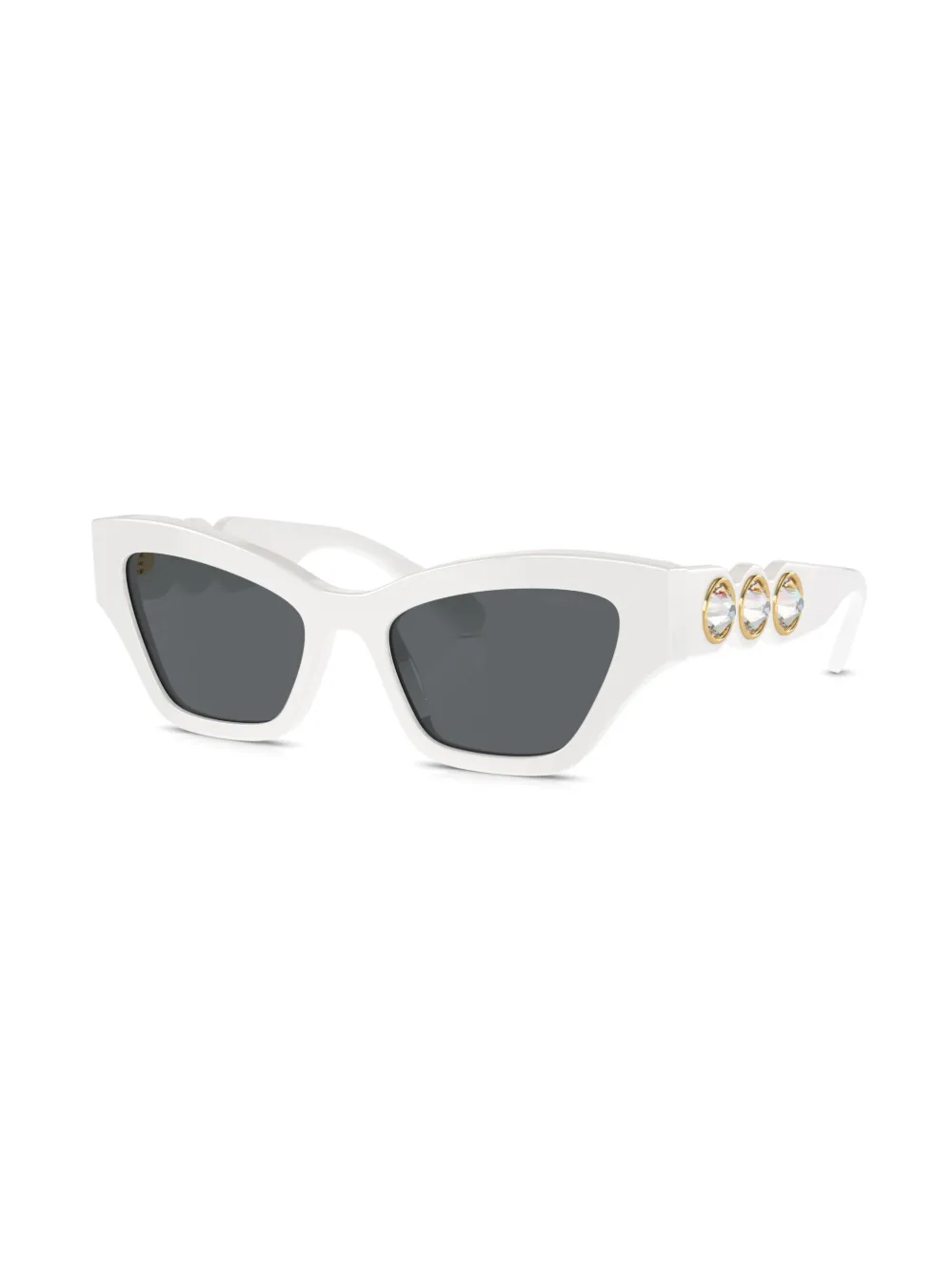 wit acetaat matte afwerking verfraaid met Swarovski-kristallen gekleurde glazen cat-eye montuur geschulpte pootjes gebogen uiteinden Deze bril wordt verkocht met een beschermhoes.
