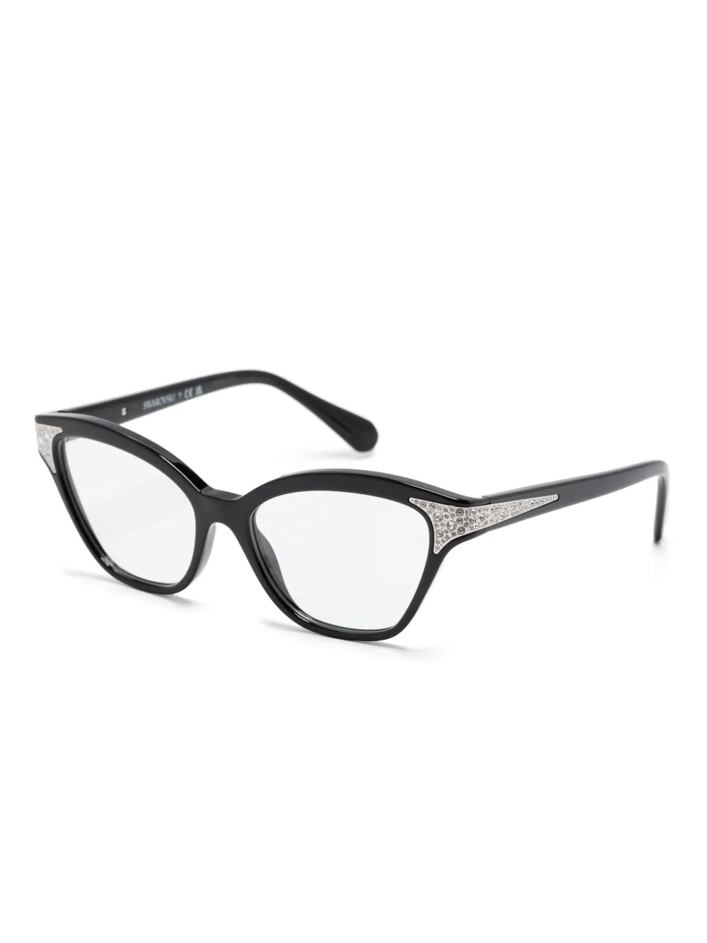 zwart verfraaid met Swarovski-kristallen cat-eye montuur doorzichtige glazen rechte pootjes gebogen uiteinden gegraveerd logo op uiteinden Deze bril wordt verkocht met een beschermhoes. Alle brillen op FARFETCH worden verkocht met glazen die niet op sterkte zijn.