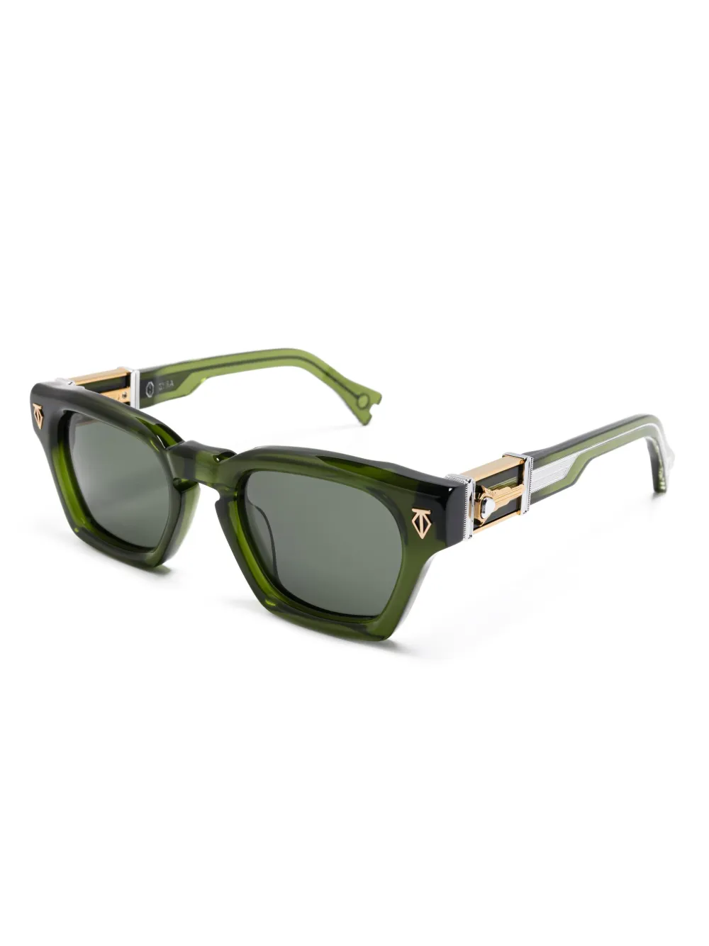 olijfgroen glazen met UV-bescherming gebogen uiteinden Deze bril wordt verkocht met een beschermhoes.